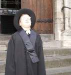 Damiaan voor de lens: hier mochten we het priesterkleed van Damiaan aantrekken en leerden we veel dankzij de foto’s van Damiaan.