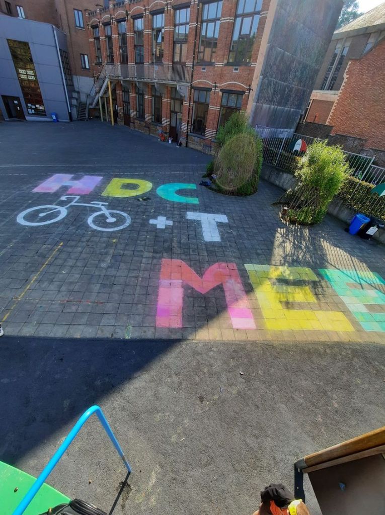 De journaliste van Leuven Actueel heeft alvast onze voorbereidingen gezien van onze “krijttekeningen” .