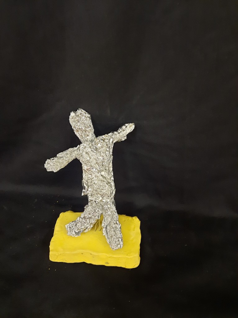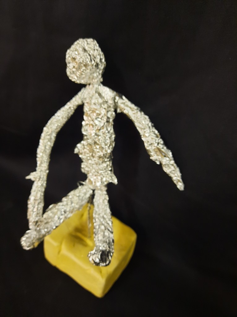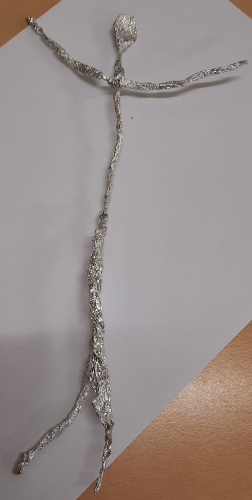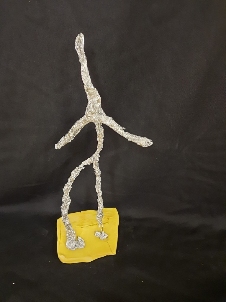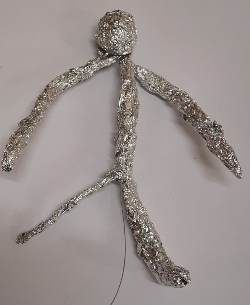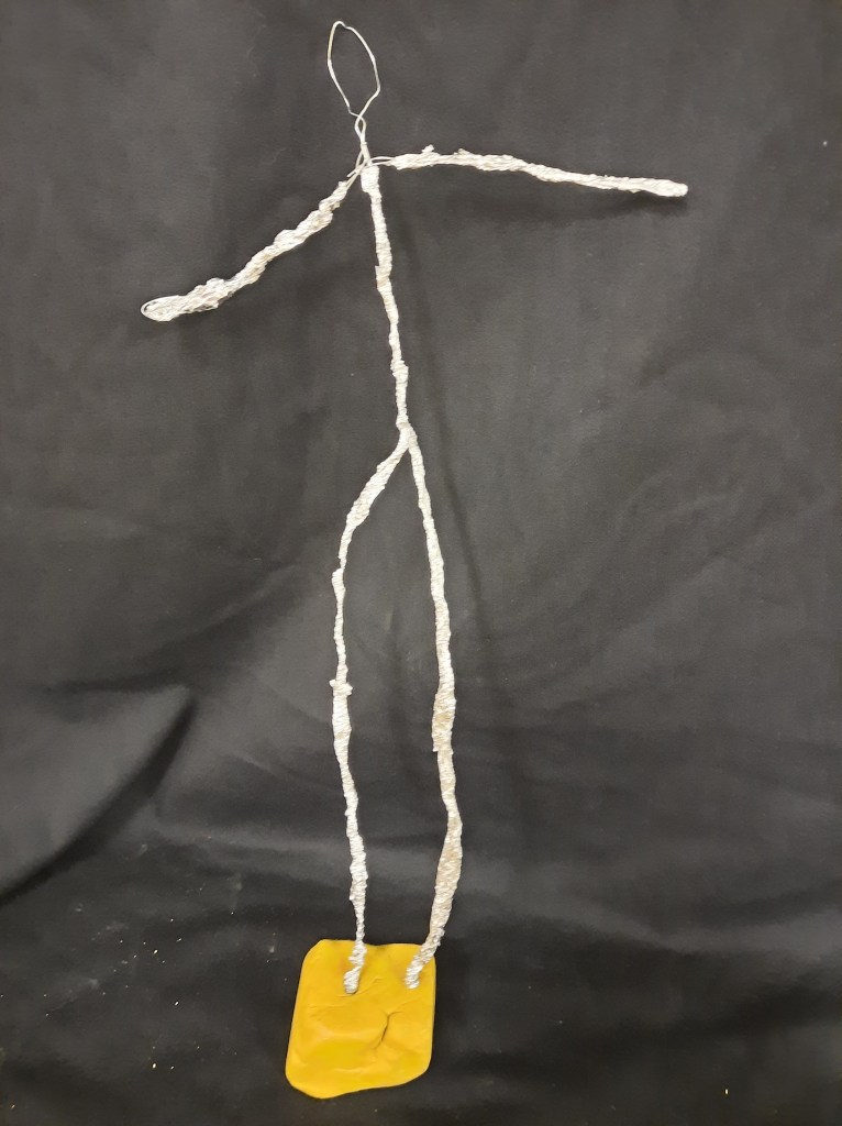 Het 5de leerjaar maakte o.a. deze draadbeeldjes.