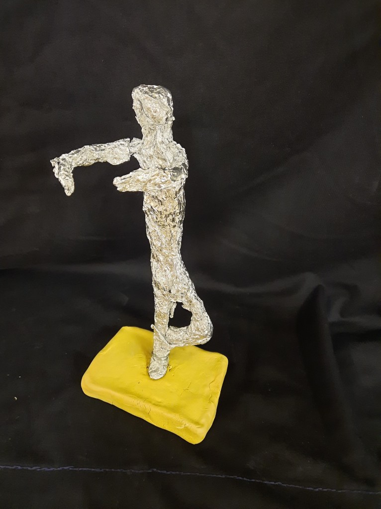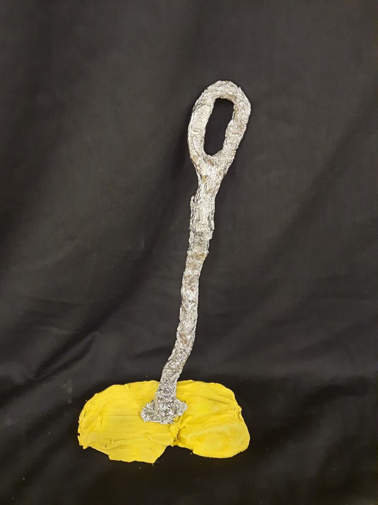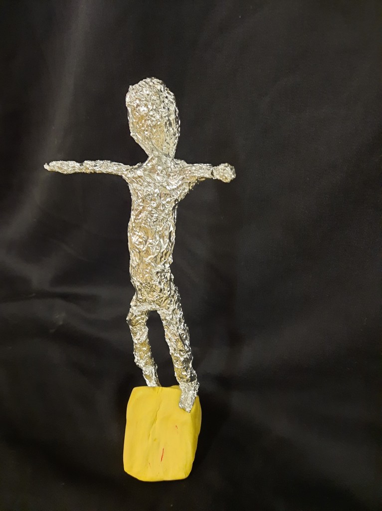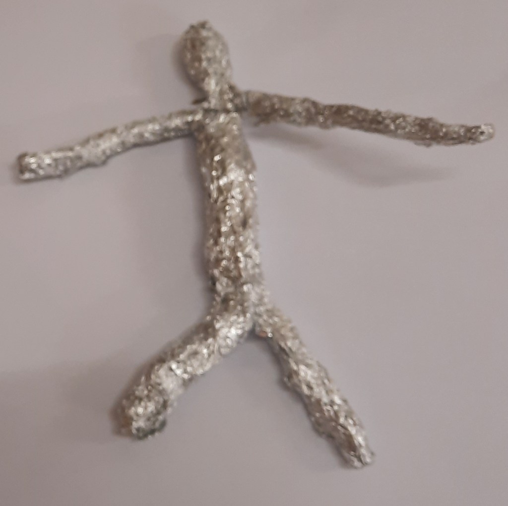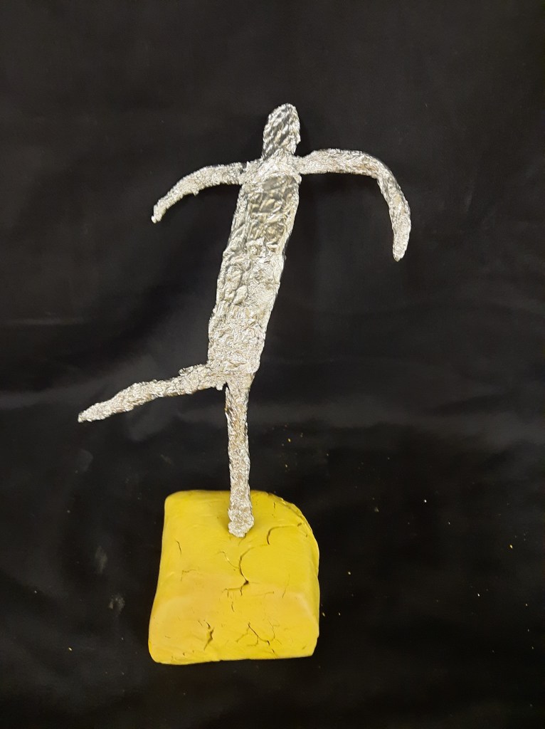 Het 5de leerjaar maakte o.a. deze draadbeeldjes.