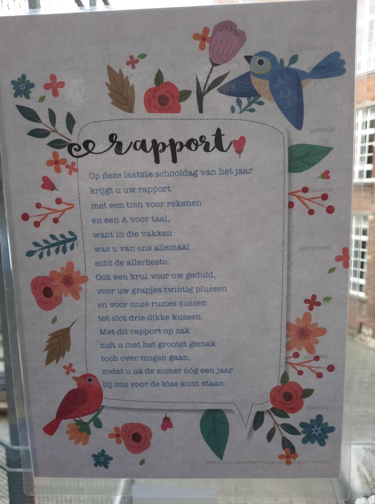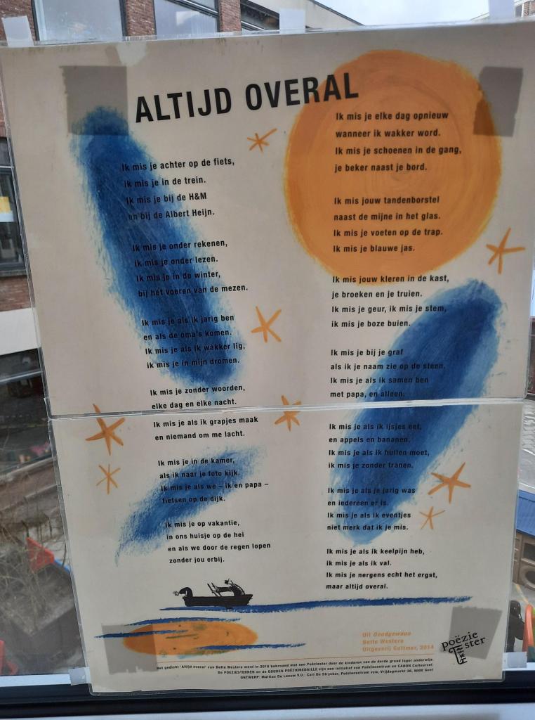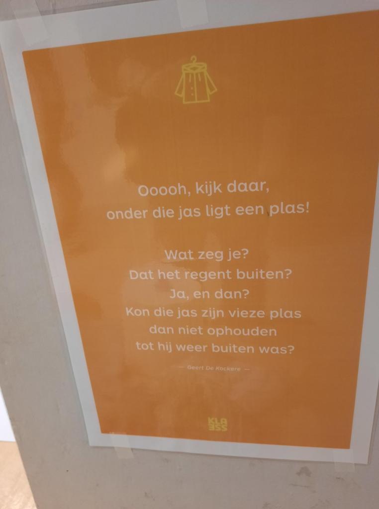 Heel wat meesteres en juffen en hebben enkele mooie gedichten in de gangen opgehangen. Je kan op de foto’s klikken en als je dan nog eens klikt, vergroot de tekst.
