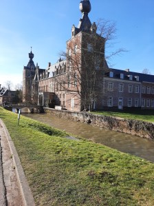 We keren terug langs de poort van het kasteel. De poort staat open. We hebben geluk. We wandelen erdoor.
