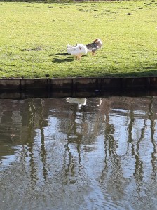De grote ganzen “gakken” er wel, als je te dicht komt.