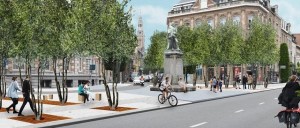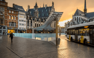 Langs de Redingenstraat, voorbij de theaterzaal van “De Reynaertghesellen“. Naar de Schapenstraat naar het Damiaanplein, …